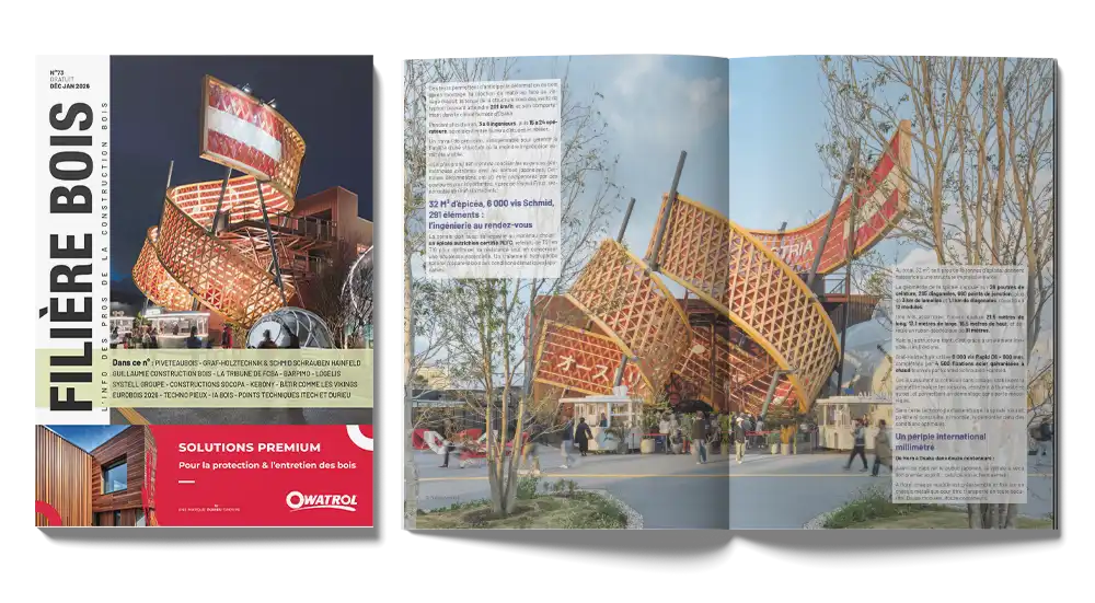 Découvrez le magazine FILIÈRE BOIS, l’incontournable source d’information pour les professionnels de la filière bois. Plus de 47 000 abonnés et une diffusion bimestrielle sur 105 000 professionnels du bâtiment.